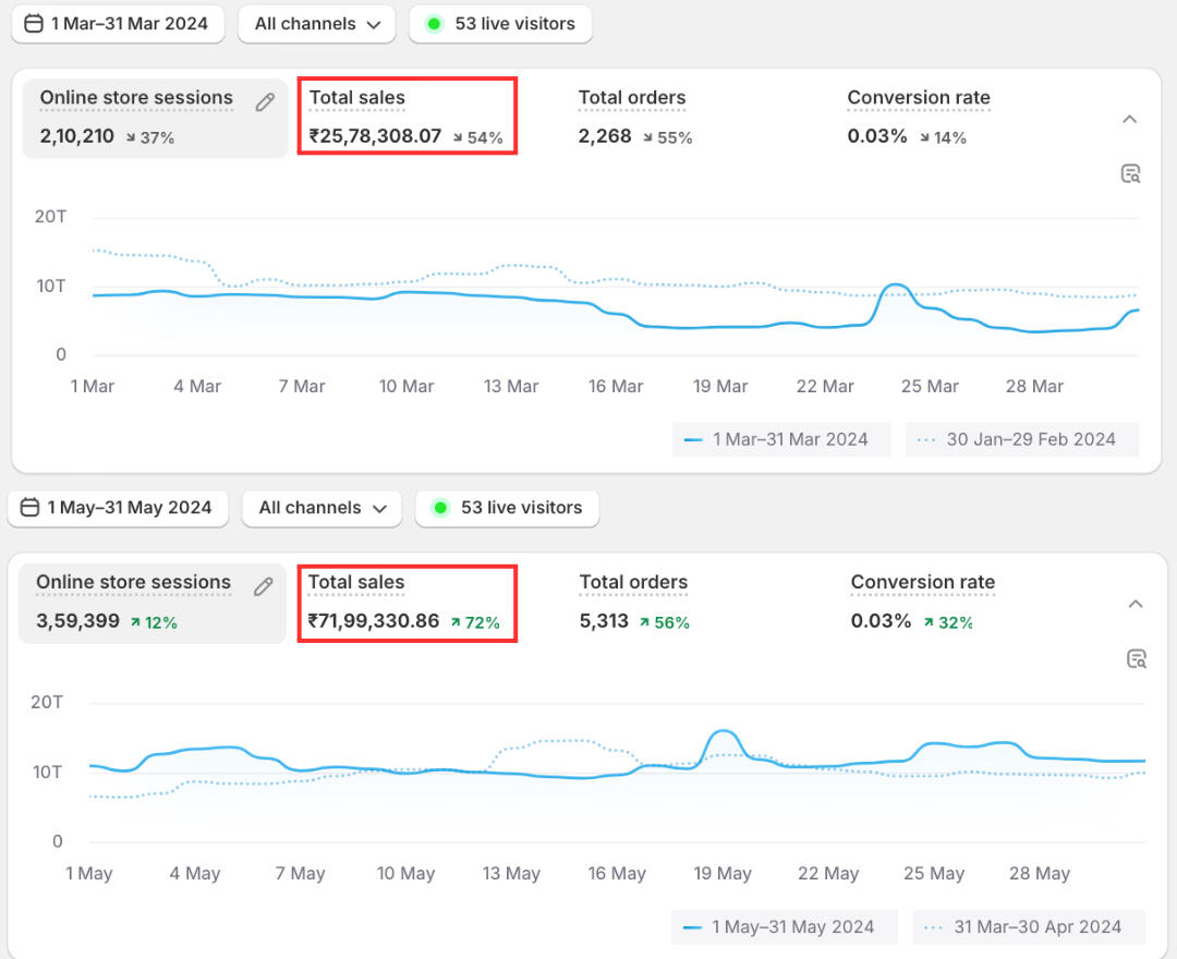 The jewellery & accessories brand never going beyond 6L+ months started working with us in March & since then the growth has been consistent besides profitability. The biggest concern before we started for the founder was that the brand isn't scaling as smoothly as he wanted & ROAS use to be around 5-6X that time. With out efforts on content, ads & growth consulting, we improved the ROAS to 6-7X in first 3 months & then scaled to 85L+ within 10 months. Since we started brand has almost generated a 4.4Cr in profitable revenue.